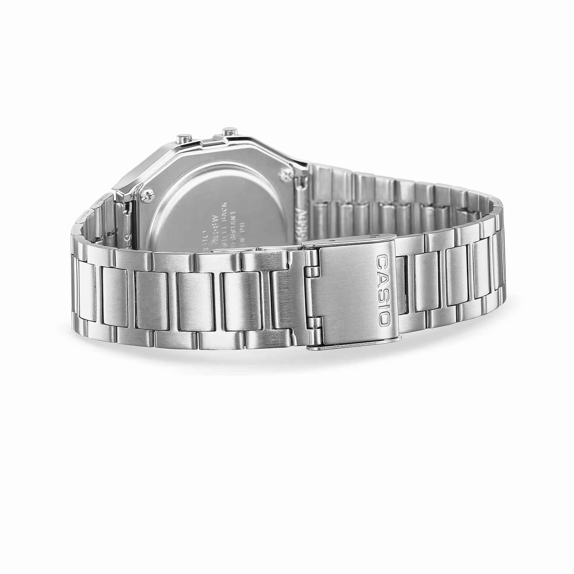 ساعت کاسیو A158WA-1DF یک ساعت دیجیتال کلاسیک با بند استیل ضد زنگ، صفحه مستطیلی خوانا، کرنومتر دقیق و باتری بادوام است که برای استفاده روزمره انتخابی ساده و قابل اعتماد محسوب می‌شود.
