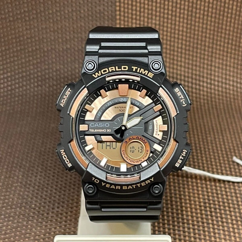 در مجموع، ساعت کاسیو AEQ-110W-1A3VDF انتخابی عالی برای کسانی است که به دوام، امکانات کامل و ظاهری شیک با جزئیات رزگلد اهمیت میدهند.