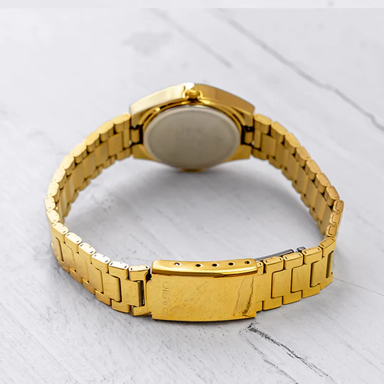 ساعت کاسیو LTP-1170N-9AR یک ساعت آنالوگ زنانه با بند استیل ضد زنگ طلایی، نمایش تاریخ و طراحی ساده و رسمی است که برای استفاده روزمره و استایل کلاسیک انتخابی شیک و بادوام محسوب میشود.